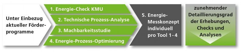 Das spezifische Dienstleistungsangebot für KMU bietet dem Unternehmer grösstmöglichen Nutzen durch seine Flexibiltät und sein modulares System. Diese 5 Dienstleistungen führen zur Steigerung der Energie-Effizienz auch in Ihrem Unternehmen.